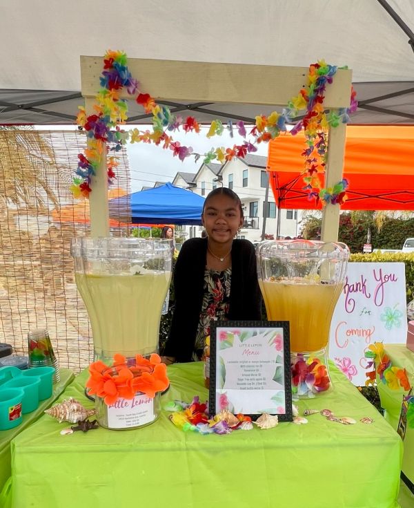 Pilar’s vibrant, Hawaiian-themed lemonade stand became a local favorite during Lemonade Day Lomita 2025. She offered a unique menu featuring fresh-squeezed lemonade, mango-pineapple lemonade with chamoy rims, sugar-free options made with agave, and fruit- and herb-infused waters. Her attention to detail—from tropical décor to music—created a memorable customer experience that set her business apart.