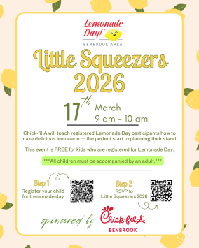 Join us for a fun hands-on Lemonade Day workshop hosted by Chick-fil-A Benbrook!